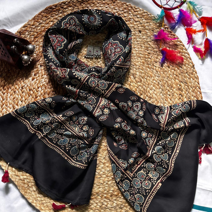 Handcrafted Modal Silk Ajrakh Scarf/Stole Perfect to pair with kurtis, tees , skirts & so on!!!