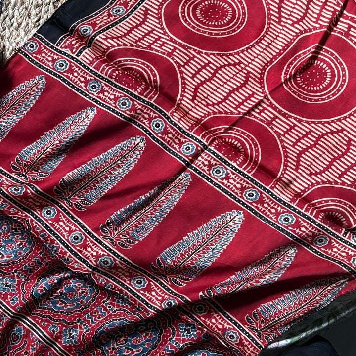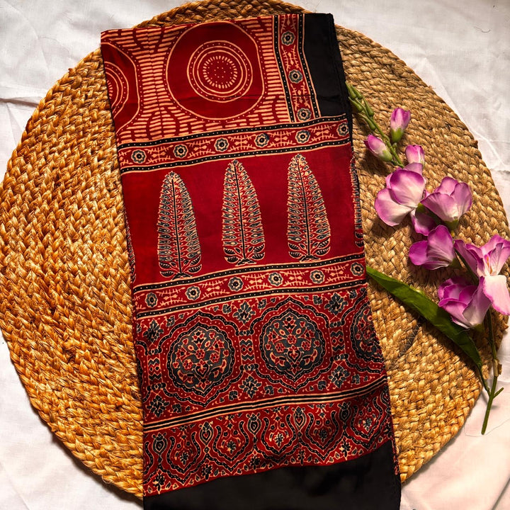 Handcrafted Modal Silk Ajrakh Scarf/Stole Perfect to pair with kurtis, tees , skirts & so on!!! Swipe for more pics