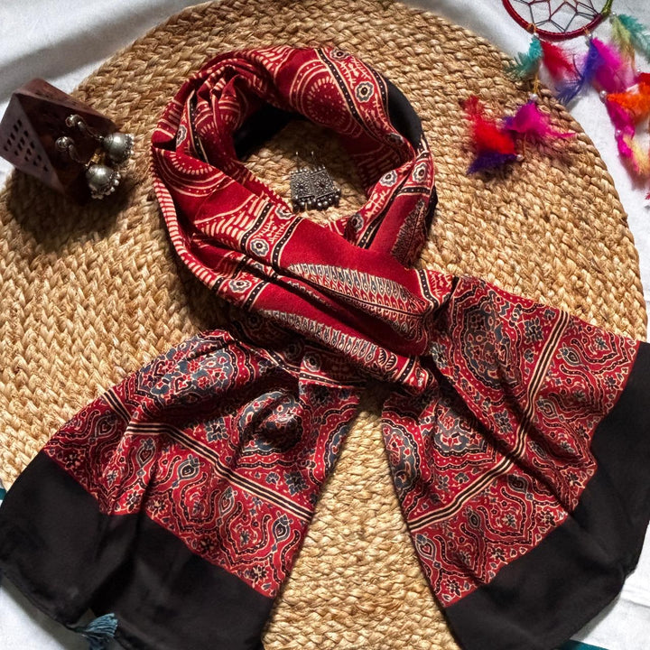 Handcrafted Modal Silk Ajrakh Scarf/Stole Perfect to pair with kurtis, tees , skirts & so on!!!