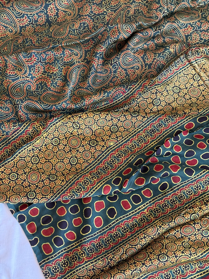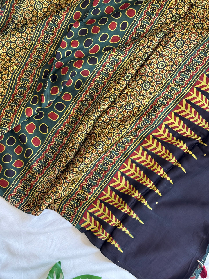 Handblock Modal Silk Ajrakh Sarees , comes with an running blouse.