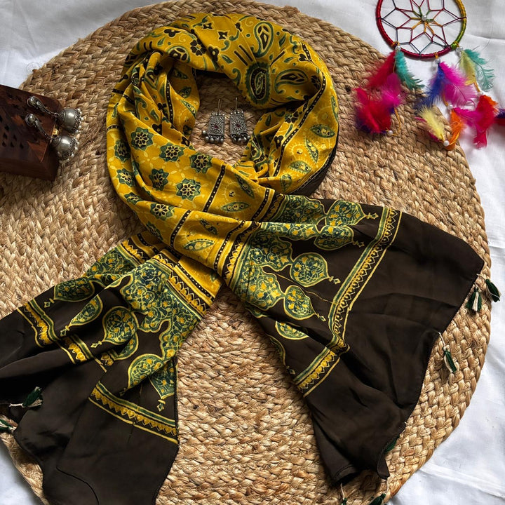 Handcrafted Modal Silk Ajrakh Scarf/Stole Perfect to pair with kurtis, tees , skirts & so on!!!