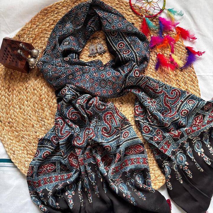 Handcrafted Modal Silk Ajrakh Scarf/Stole Perfect to pair with kurtis, tees , skirts & so on!!!