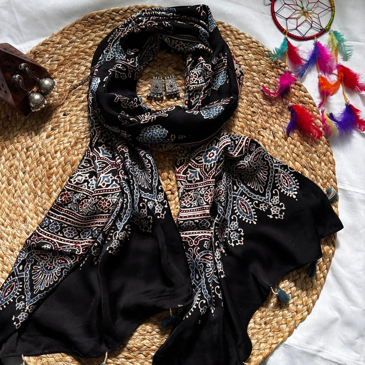 Handcrafted Modal Silk Ajrakh Scarf/Stole Perfect to pair with kurtis, tees , skirts & so on!!!