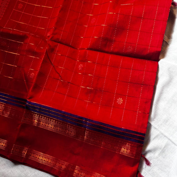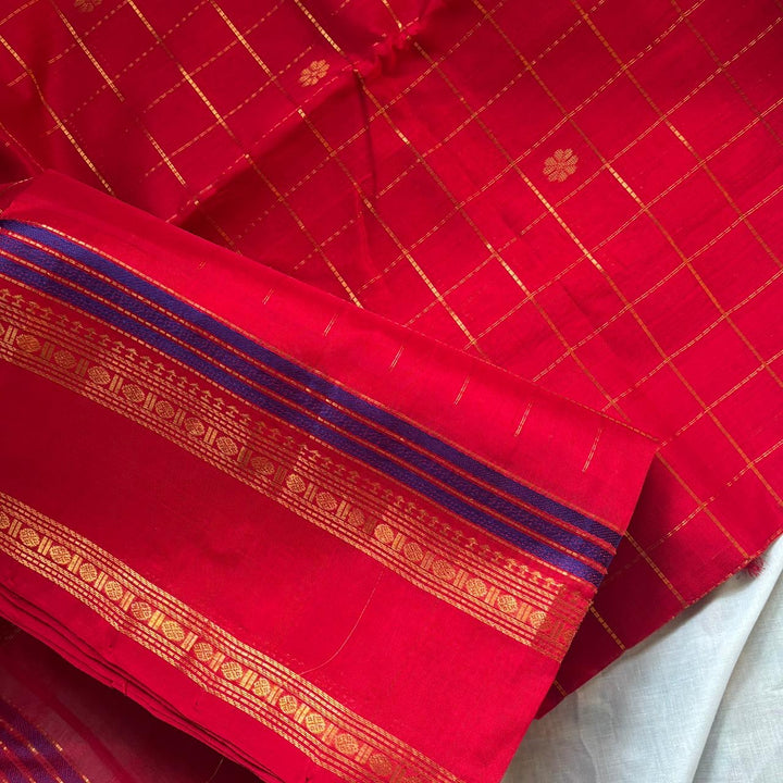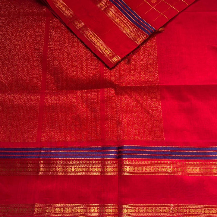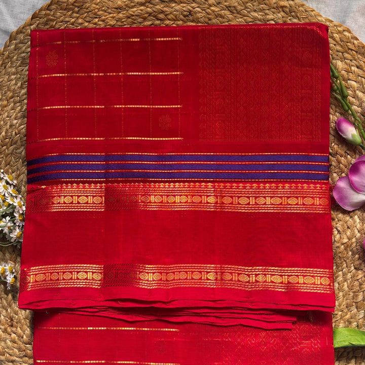 Handwoven Kanchi Silkcotton in Bindhi Red Shade comes with a Self blouse and Pallu.