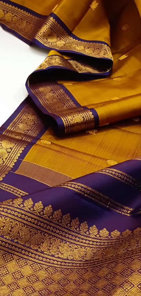 Immediate Dispatch Exquisite Handwoven kancheevaram Silk in Biscuit Brown shade with a beautiful Contrast Electric Purple pallu and blouse. Swipe to check the beautiful Pallu and more...