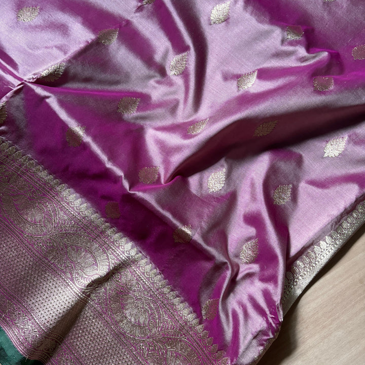 Handwoven Banarasi Katan Silk Saree in Prettiest Blossom Pink Shade , comes with an running blouse.