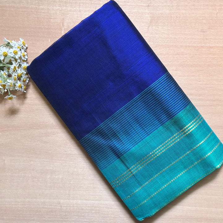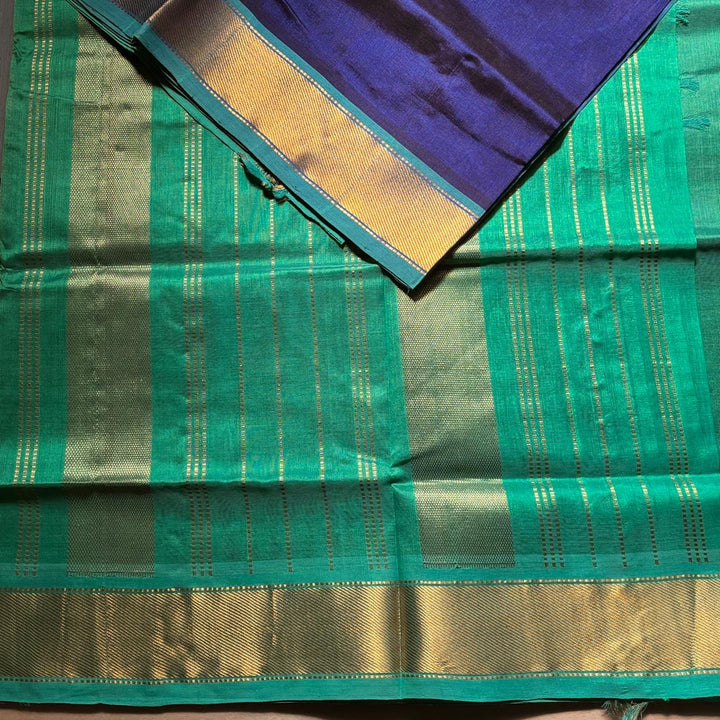 Handwoven Kanchi Silkcotton in Electric Blue Shade comes with a light blue blouse and Pallu.