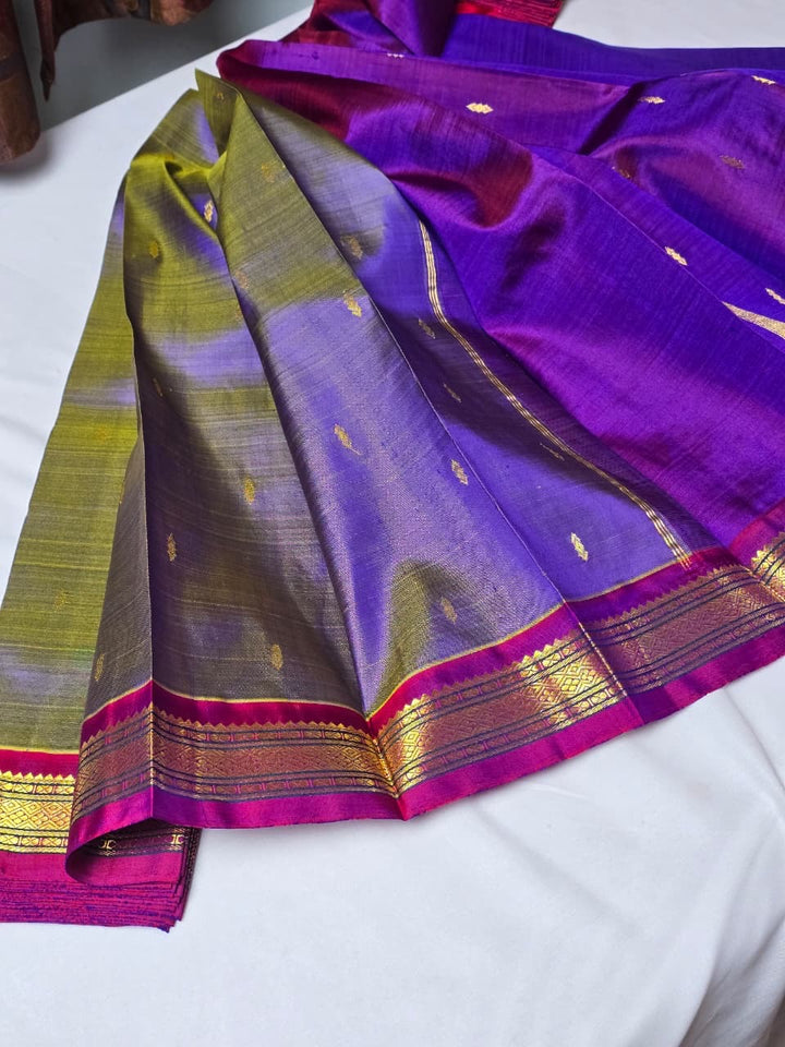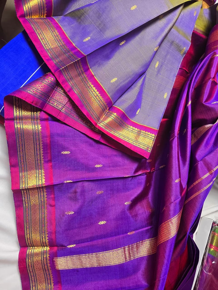 Premium Handwoven Single warp Thirubhuvam Silk in Lilac shade with a beautiful Vadamalli Purple pallu and blouse.