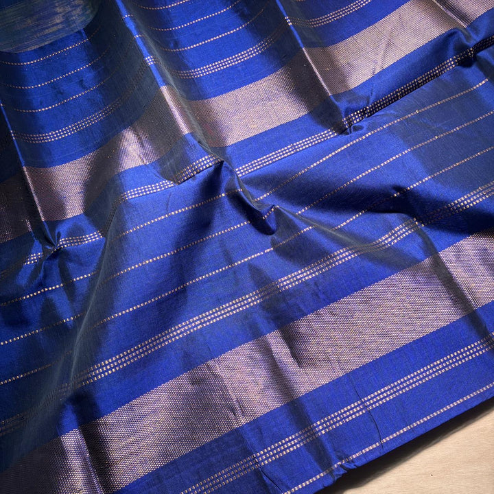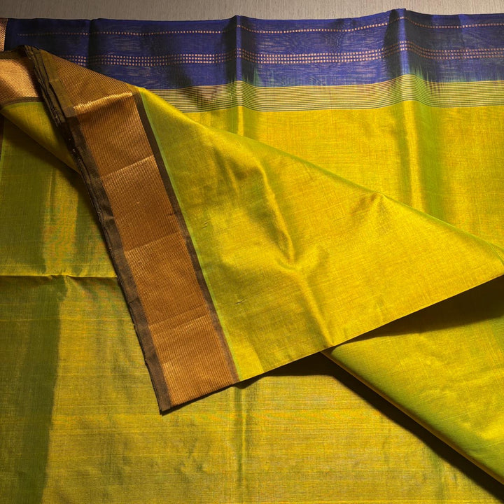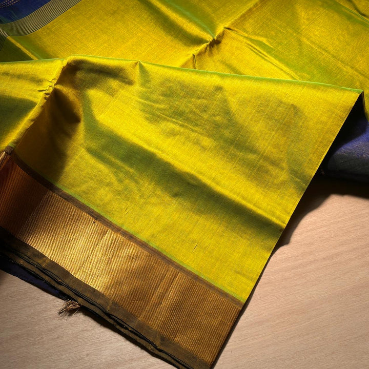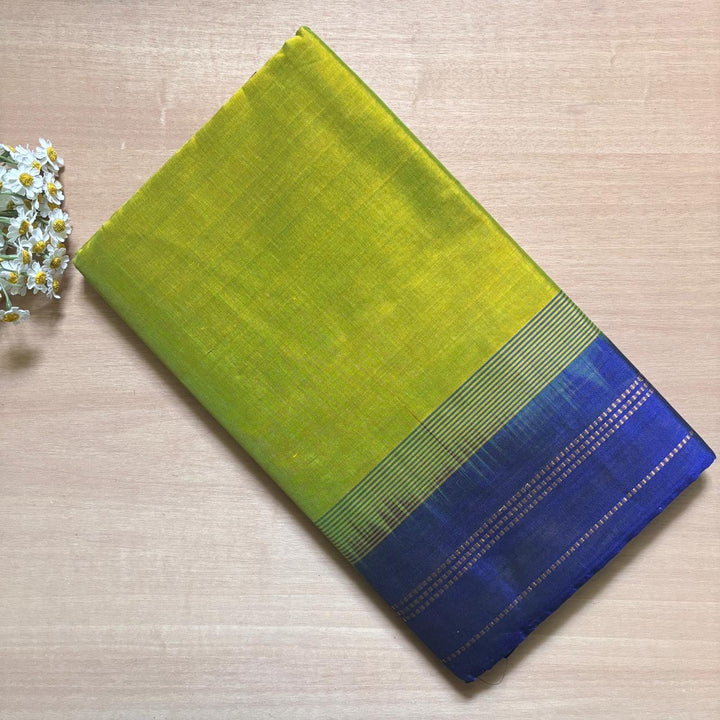 Handwoven Kanchi Silkcotton in Olive Green Shade comes with a Electric blouse and Pallu.
