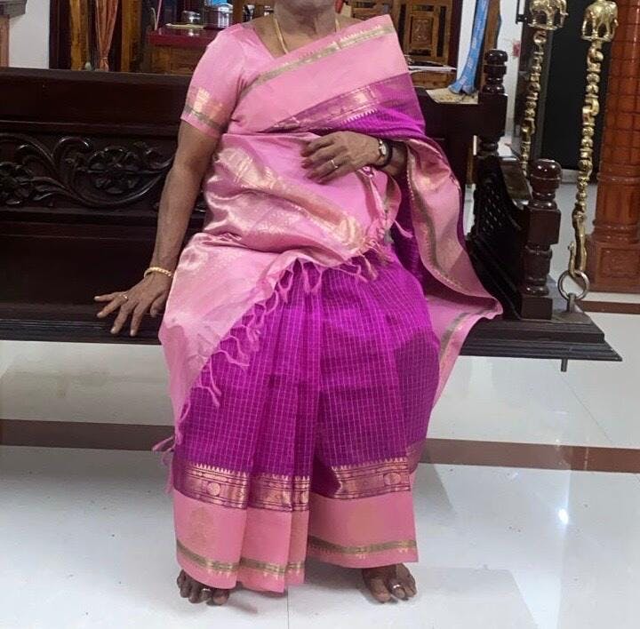 Handwoven Kanchi korvai Silkcotton in Pink Shade comes with a Pastel Pink blouse and Pallu.