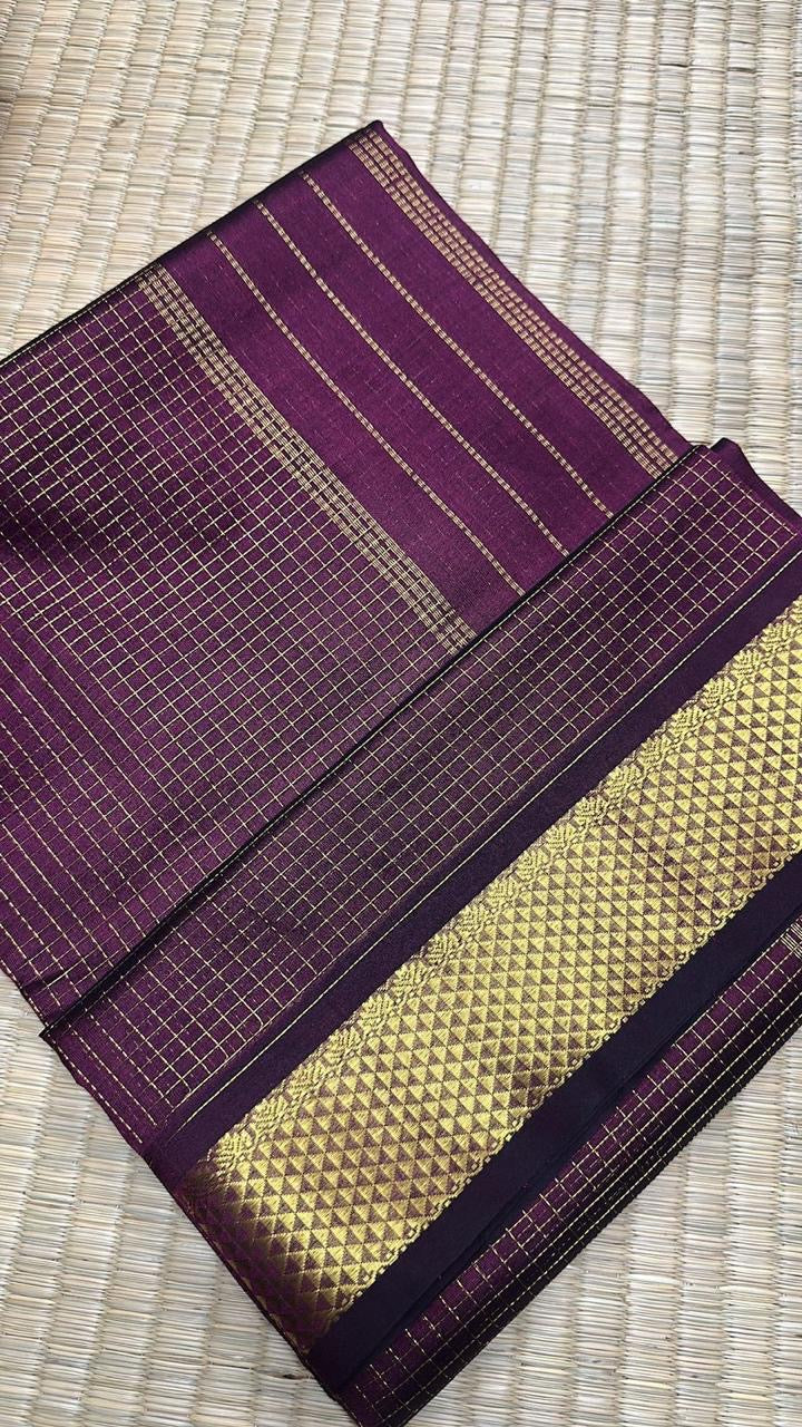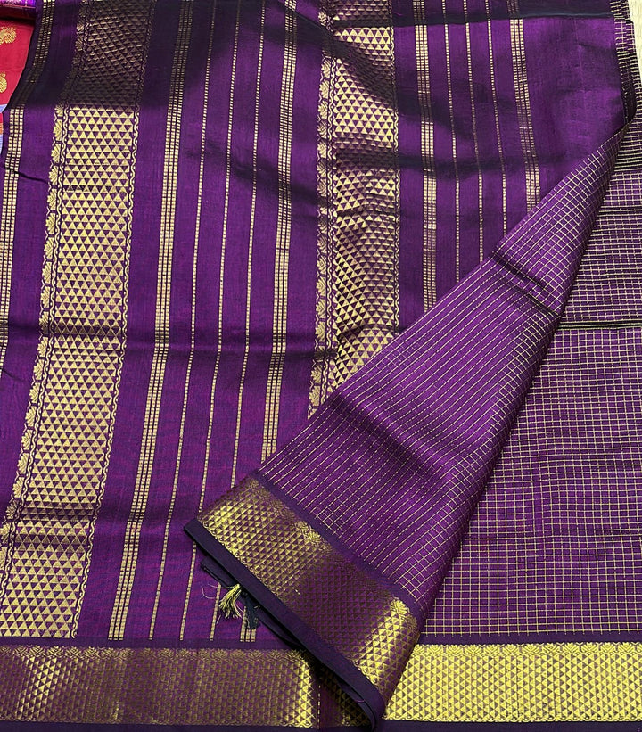 Handwoven Kanchi korvai Silkcotton in Purple Shade comes with a self blouse and Pallu.